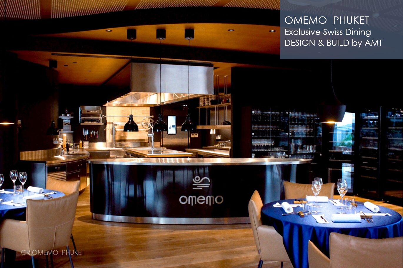 Designed with elegance and precision, OMEMO features a sculptural oval stainless-steel counter—a seamless blend of form and function, setting the stage for an elevated dining experience where luxury meets warmth.