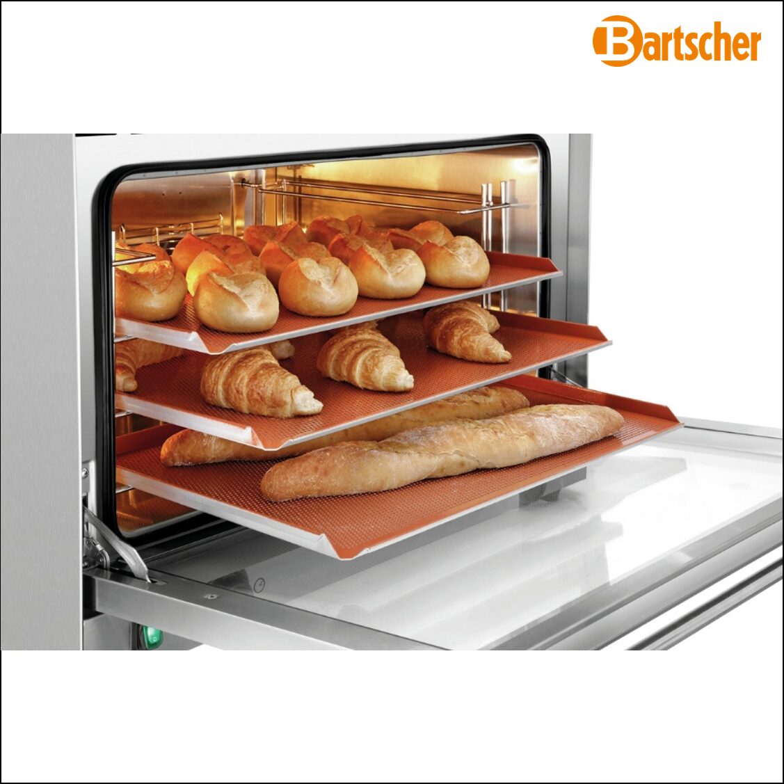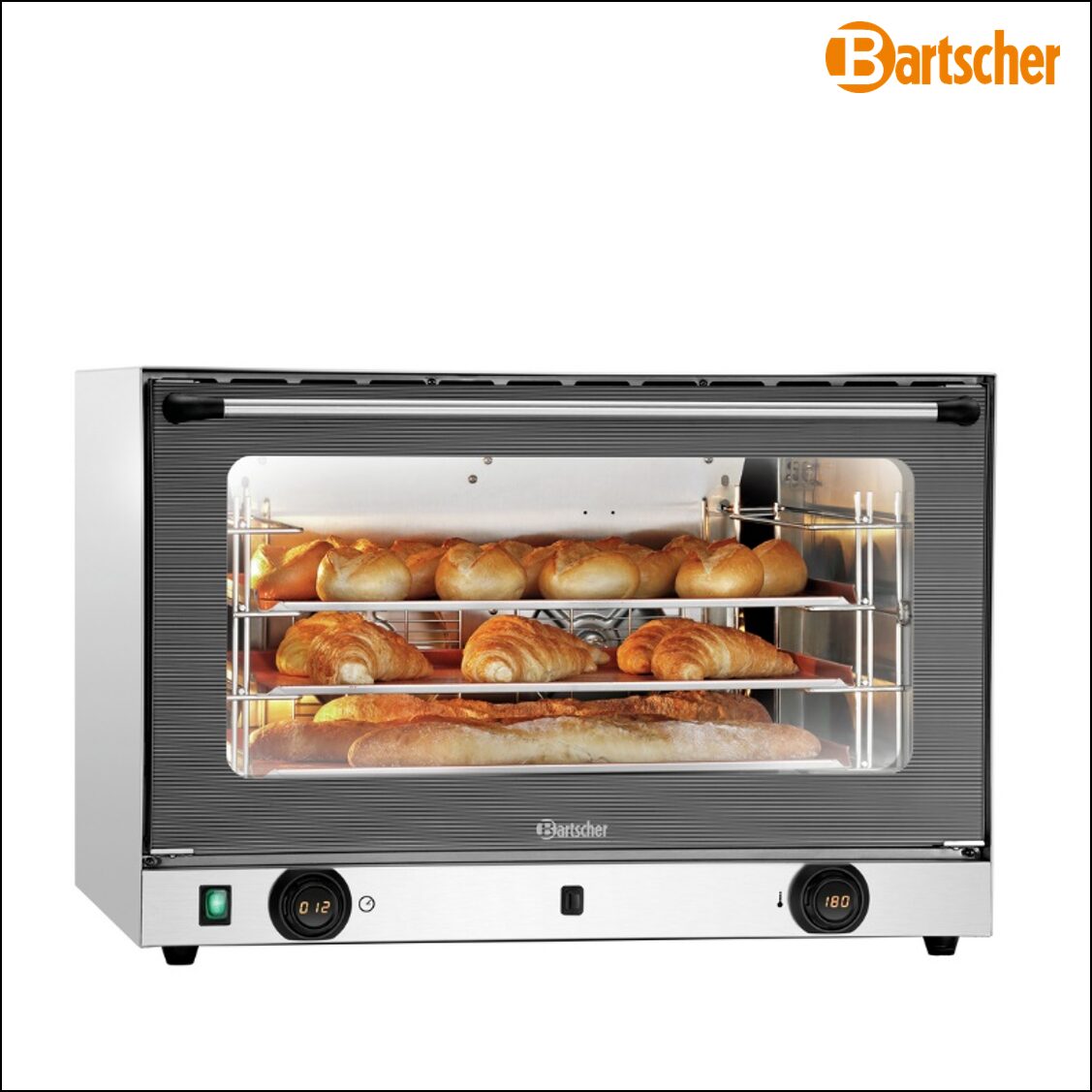 Convection Oven for Bakery Trays 600×400 mm. Tried-and-tested features meet top ease-of-use – the AT410-MDI combines the solid functionality of the AT series with the digital Bartscher MDI control for quick and easy temperature and time regulation.