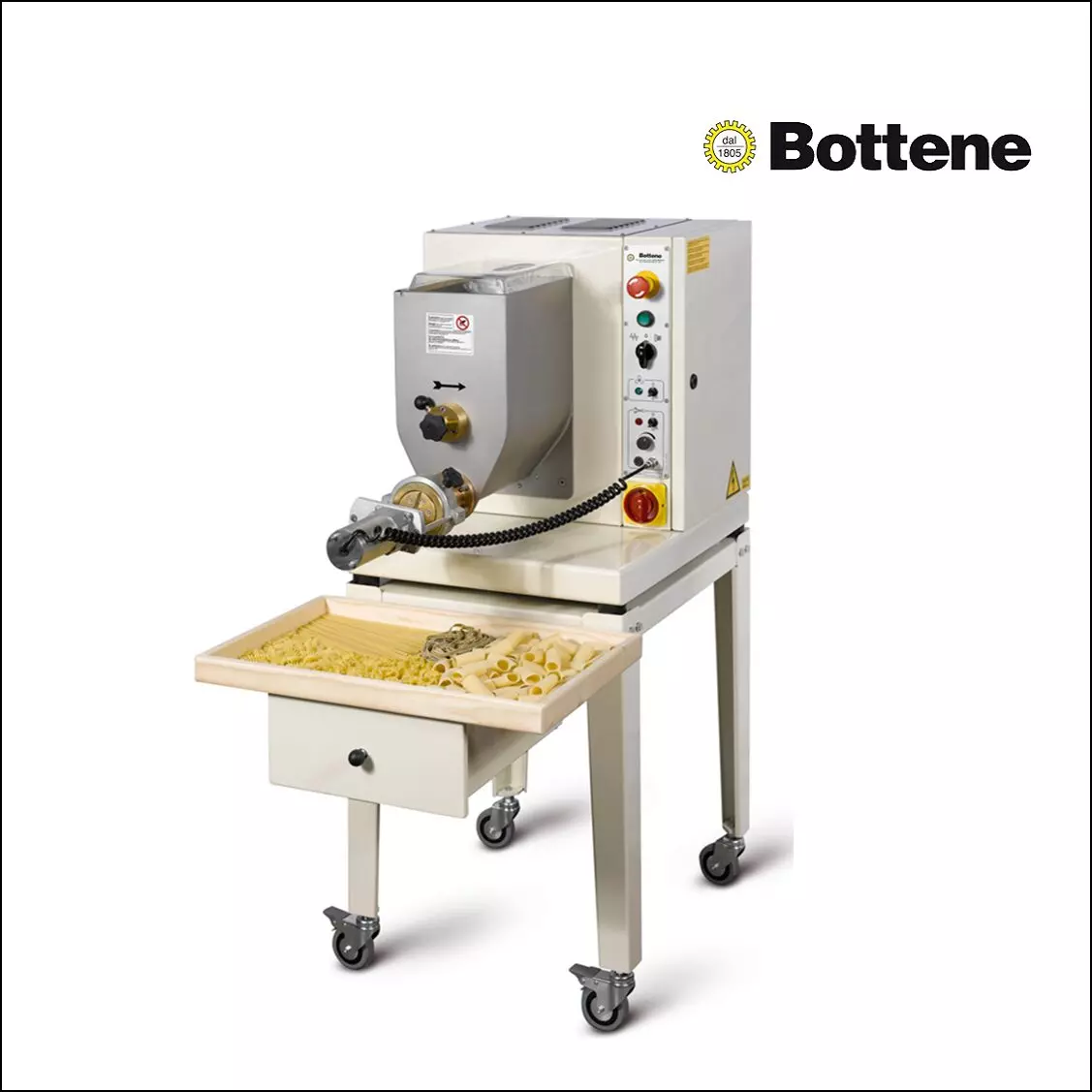 Bottene INVER7Â fresh pasta making machine is very robust and easy to use. It can make various types of fresh pasta. Each machine comes with standard 4 dies, cleaning accessories, keys, and liquid dosers.